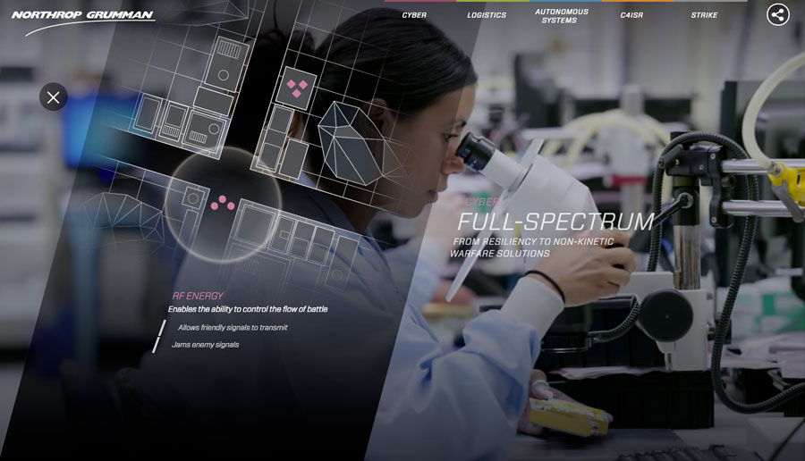 Northrop Grumman is on the cutting edge of technology. Their acheivements go far beyond warfare to include advancements that benefit space exploration, communication and artificial intelligence. We were tasked to showcase the breadth of their abilities with a responsive video-heavy website.