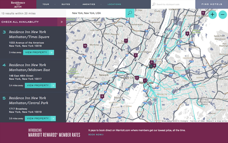 All the Marriott brands have their own personality. They each wanted to showcase this uniqueness while bringing online booking and location services to the forefront.