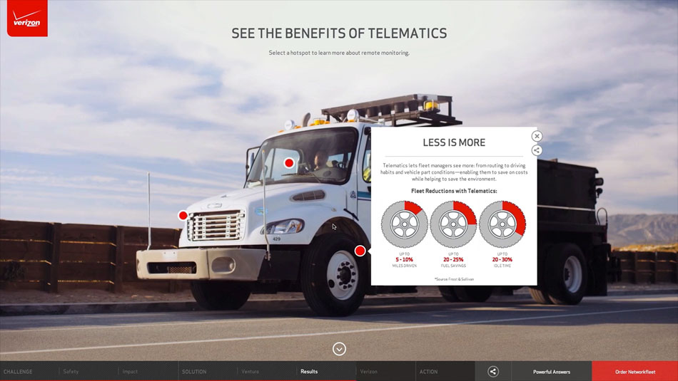 The Powerful Answers campaign showcased how Verizon uses innovative technology to find solutions to the world’s biggest challenges. Each phase of the campaign featured a unique solution promoted on TV and accompanied by more in-depth information online. It was our goal to create an online experience that matched each solution with an equally innovative, adaptive website ensuring an optimal experience across devices.