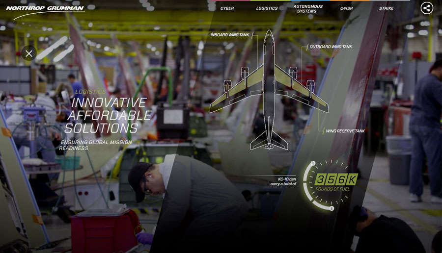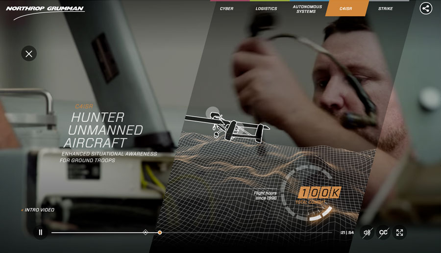 Northrop Grumman is on the cutting edge of technology. Their acheivements go far beyond warfare to include advancements that benefit space exploration, communication and artificial intelligence. We were tasked to showcase the breadth of their abilities with a responsive video-heavy website.